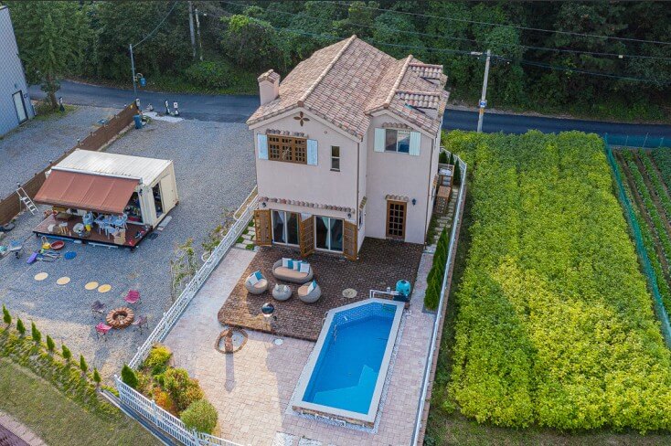: 첫 번째로 소개해 드릴 용인 완전 독채펜션은 호수 바로 앞에 위치해 호수 뷰가 아름다운 쁘띠프로방스펜션입니다. 마치 프랑스에 온듯한 아기자기한 호수 전망 펜션이랍니다.