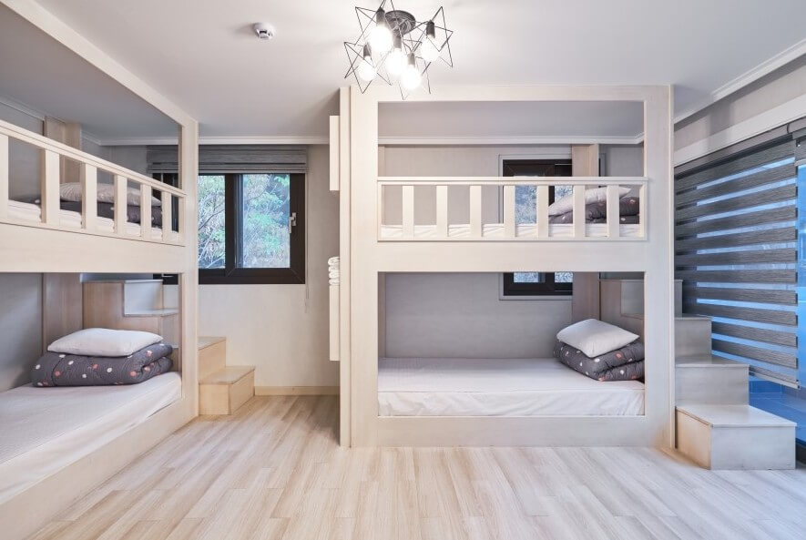 - 2층 : 침대 2개 + 싱글베드 1개 : 5인실