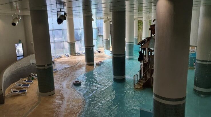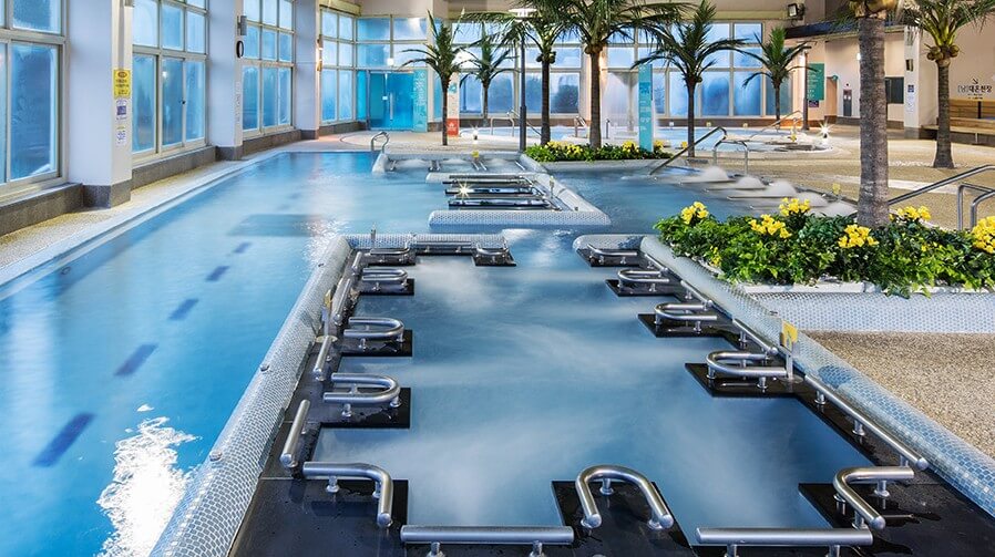 노천탕과 실내 온천탕이 준비되어 있습니다. 야외에는 큰 수영장 같은 온천과 프라이빗 스톤 스파로 구성되어 있습니다. 실내 스파는 힐링 스파 존 , 아쿠아플레이존 , 찜질 스파 존이 있습니다.