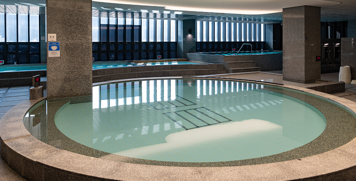 : 지하 1,198m 암반에서 용출된 알칼리성 중탄산 광천 온천수가 공급되며 쾌적한 라커룸을 완비한 대규모 남/여 온천탕입니다.