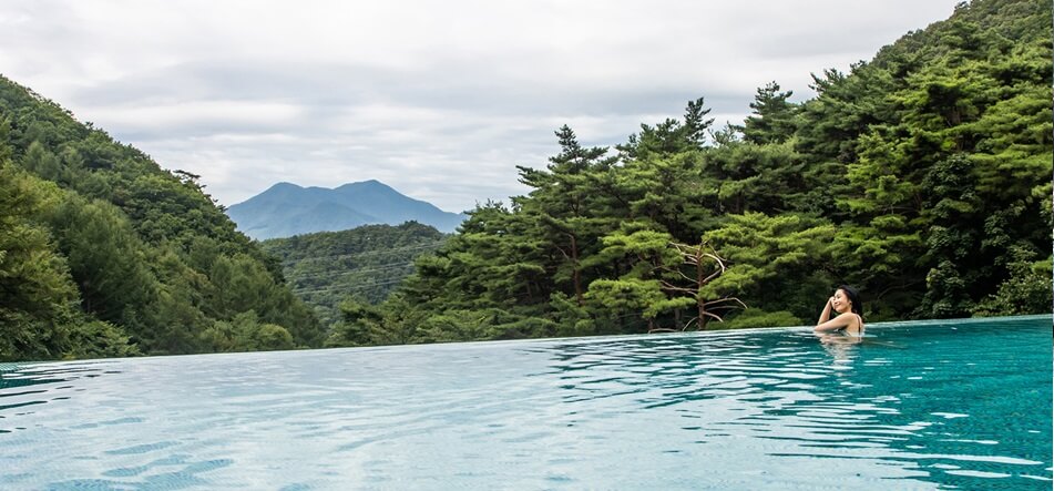 큰 수영장보다 더 넓은 인피니티풀이 있으며 야외 6개의 프라이빗 스톤스파와 중대형 이벤트 스파로 구성되어 있습니다. 자연과 함께 어우러진 곳에 있기 때문에 많은 사람들에게 사랑받는 장소 중 하나입니다.