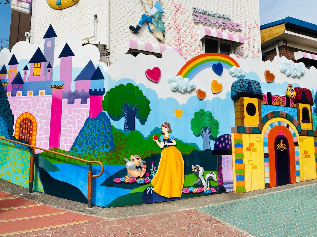 : 동인천역 차이나타운 근처에 있는 동화마을입니다. 마을 전체에 동화와 관련된 캐릭터와 벽화들이 그려져 있어 마을을 돌면서 구경도 하고 사진도 찍을 수 있는 곳입니다. 아무래도 동화 캐릭터들이 많아서 아이들이 정말 좋아하는 곳입니다.