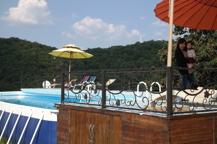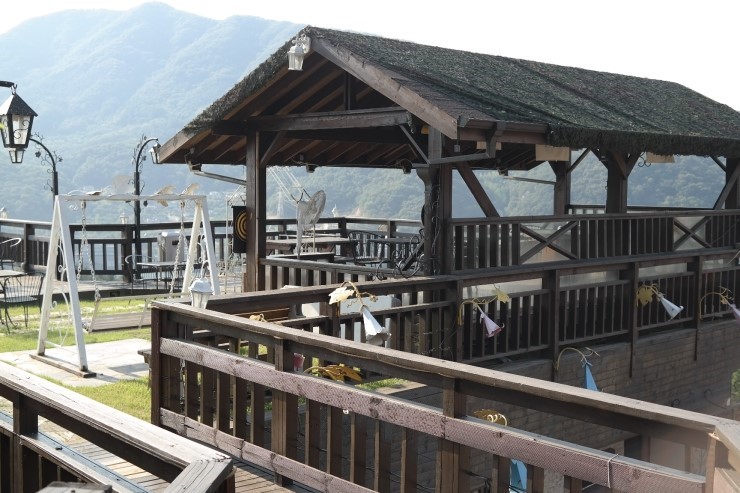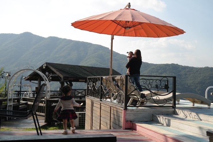 크지는 않지만 , 적당한 사이즈고 , 옥상에 위치하고 있어서 그런지 북한강의 화려한 경치를 구경하면서